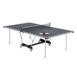 Enjoy quality time with family and friends with this easy-to-assemble and user-friendly table tennis table from Stiga. The heavy-duty table features a 5/8-inch black edge-banded surface with corner protection pads to prevent snags, 1-½-inch round steel tube legs for stability and silk-screened striping. The extra-heavy duty steel chassis with support panels provide stability in play, while the 1-1/2 -inch steel apron and cross brace add both extra table support and consistent bounce. Three-inch mag wheel casters offer easy mobility, while the two with locking brakes keep the table in place. Net and posts are included. One-year limited warranty.